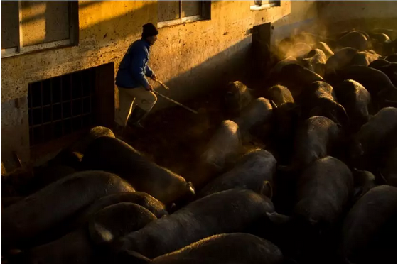 ·字体旁边的图画,山林与猪,是我们的自然散养生态方式