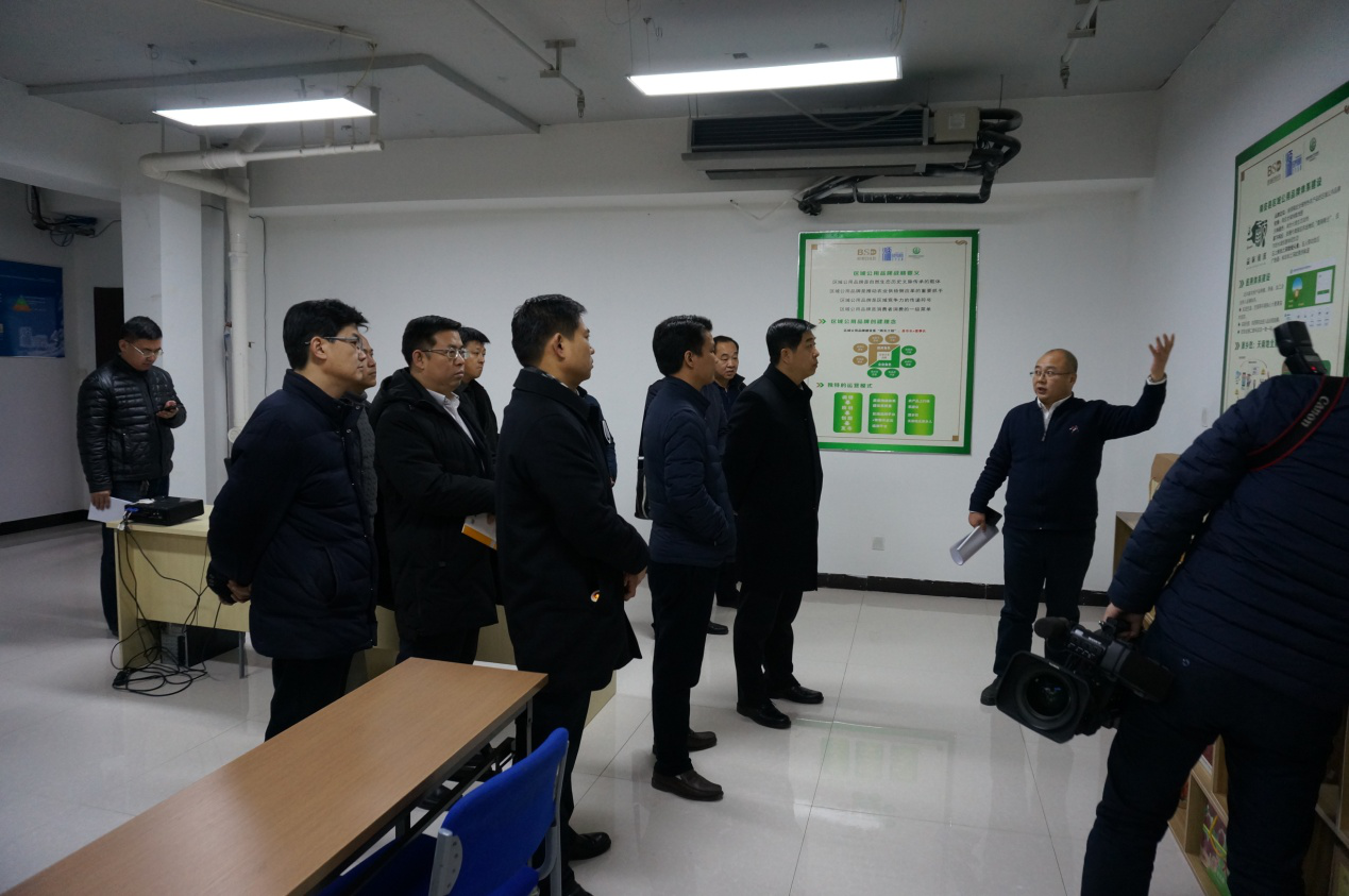 曹总一边带领鄂书记一行参观公司,一边汇报公司2017年运营情况及园区项目情况。公司自2013年成立的4年时间以来,客户已遍布全国二十八个省份,形成以“地标认证-云溯源-区域公用品牌-源乡愁电商平台-地标特色小镇”区域地标特色产业发展的新模式。