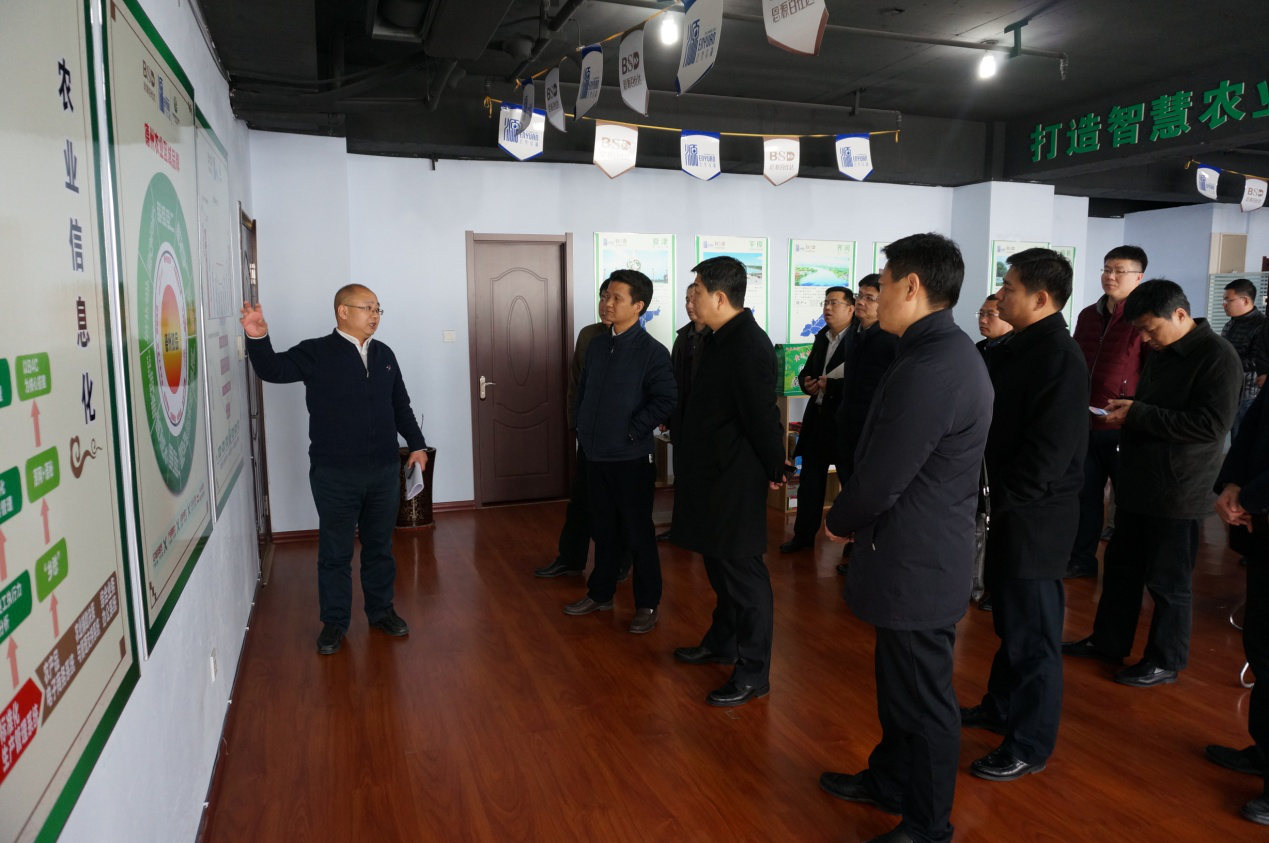 图为曹总向鄂书记介绍德州市智慧农业项目