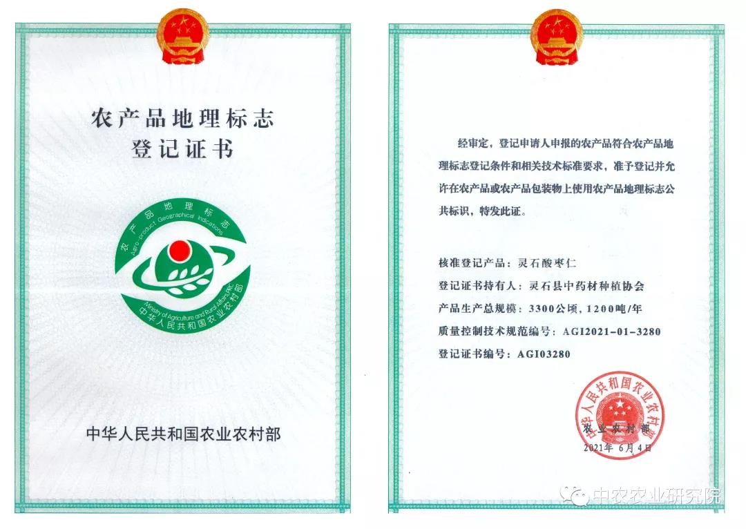 2021年,“灵石酸枣仁”成功登记为中华人民共和国农业农村部农产品地理标志产品,同年被农业农村部列为“国家地理标志农产品保护工程”。