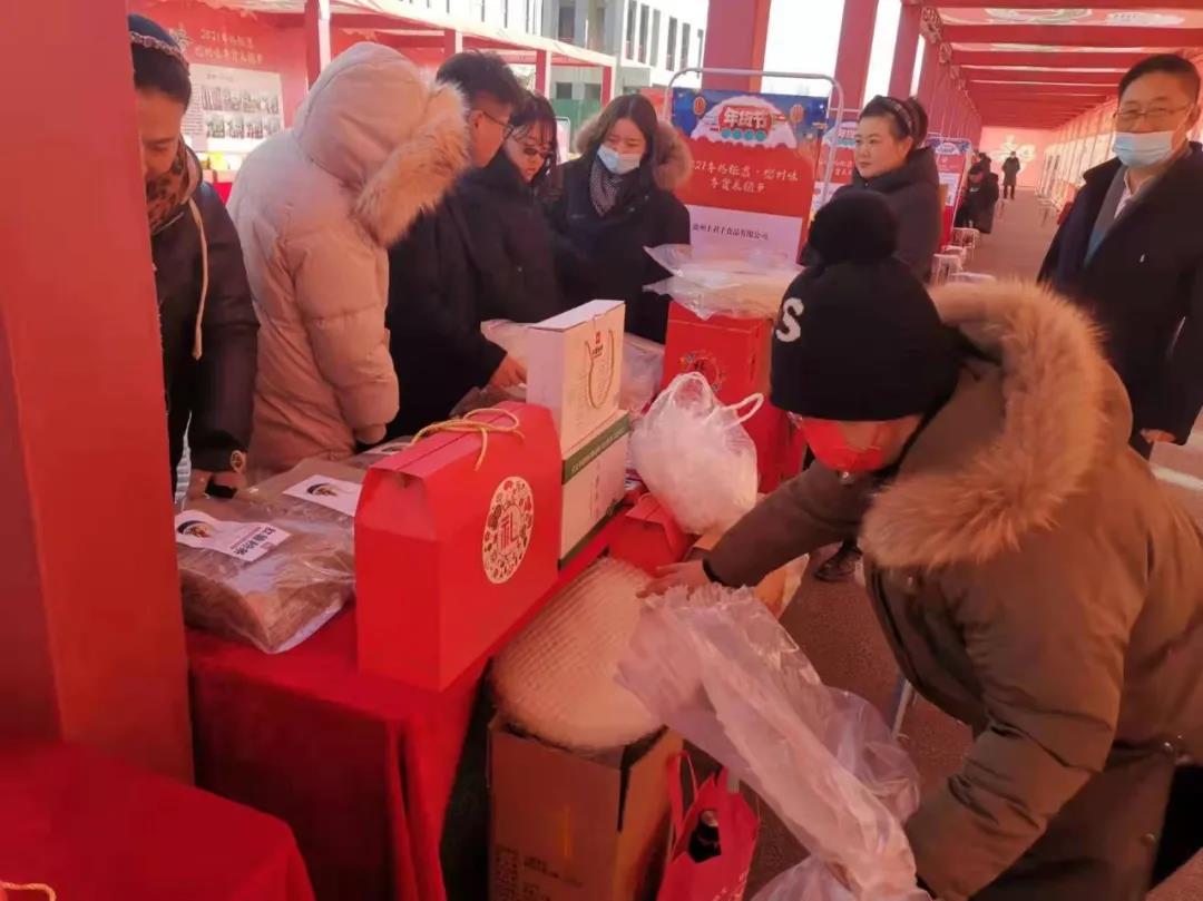 本次德州味年货节除了常规32家产品展会区外,还另设置了特色产品产销对接会,由山东德州倚诚扒鸡有限公司、山东照硕现代农业科技有限公司、夏津素源生物科技有限公司、新疆喀什疏附县木亚格杏区域公用品牌进行现场推介交流,近十家集采单位参与旁听。
