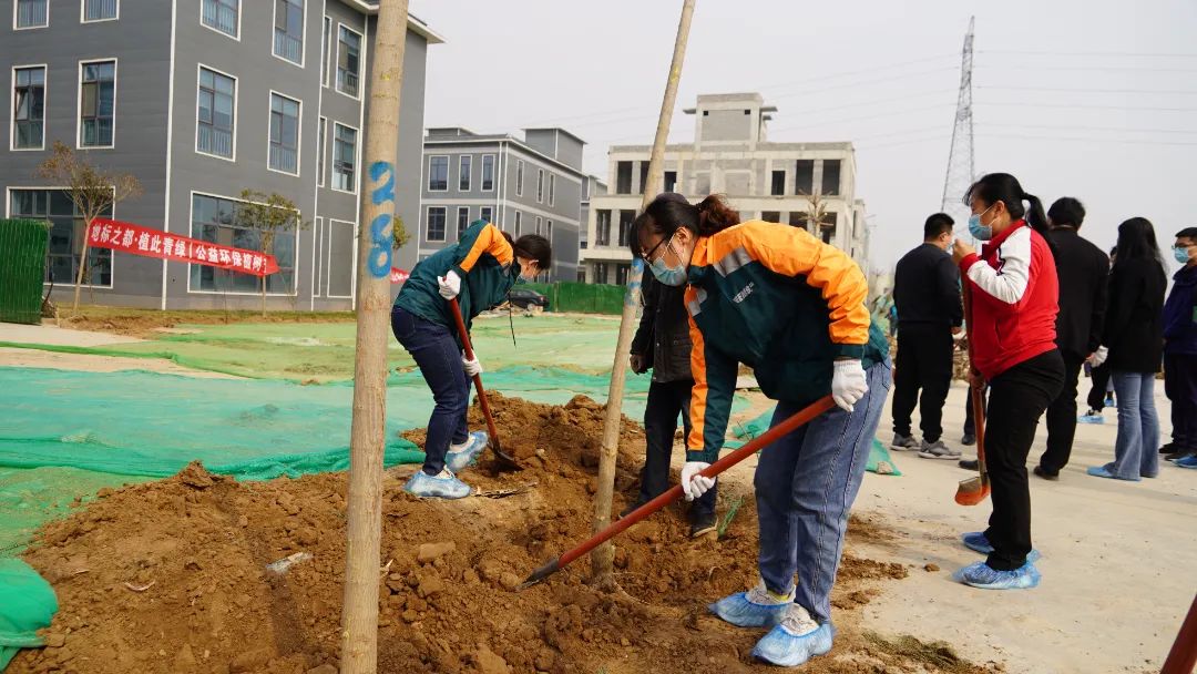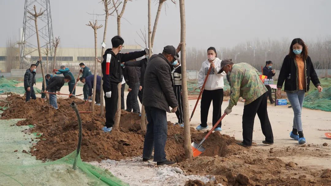 在本次活动中,大家分工协作,修整树坑、扶植树苗,培土踩实、浇水育苗有条不紊地进行,60余株树苗稳稳地扎根在了土壤中,挺立在地标之都园区内,带来勃勃生机。