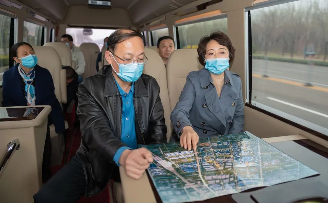 祁小青先后到天衢新区碳中和产业展示中心、杨庄河生态综合治理项目现场实地察看,并详细了解项目规划、建设进度以及推进过程中的困难和问题。