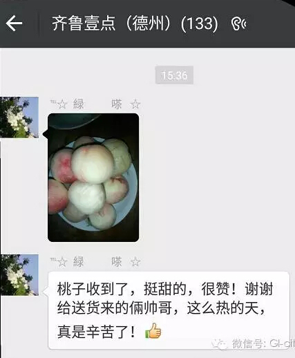 短短1天时间就帮助果农销售了1229斤桃子,人间自有真情在,我们大德州更是人情暖暖,我们以后将继续努力,我们的平台【齐鲁地标馆】gicity.yuan.cn,欢迎大家登录关注。