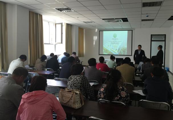 在参观完产品展示区之后,付栋友经理带大家来到培训室,讲解了恩源电商平台的作用与效果。对此大家都非常感兴趣。
