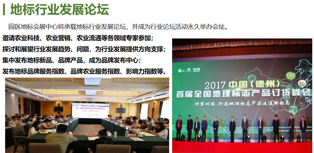 地标之都将全国2800多个县的10000余种地标产品的文化展示、创意研发、线上线下体验展销引入,为国内外客户提供买地标、卖地标、体验地标文化的一站式服务,成为全国规模最大、最权威的地标产品综合运营总部基地,打造全国地标产业集聚中心、地标文化体验中心、地标产品交易中心。